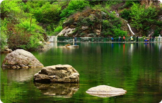 百泉山自然風(fēng)景區(qū)位于懷柔縣峪道河北雁棲湖與幽谷神潭之間,距京城63公里。景區(qū)以其特殊的地理環(huán)境、雄奇的山體結(jié)構(gòu)、豐富的植被及礦泉資源,構(gòu)成了得天獨(dú)厚的自然景觀。山中隱藏著數(shù)百山泉,使峽谷溪流不斷。百泉山四季皆有美景:春天,百花色艷,百鳥(niǎo)爭(zhēng)鳴;夏日,瀑布成群,流泉萬(wàn)千;秋時(shí),果實(shí)累累,紅葉滿山;冬季,銀裝素裹,一派北國(guó)風(fēng)光。